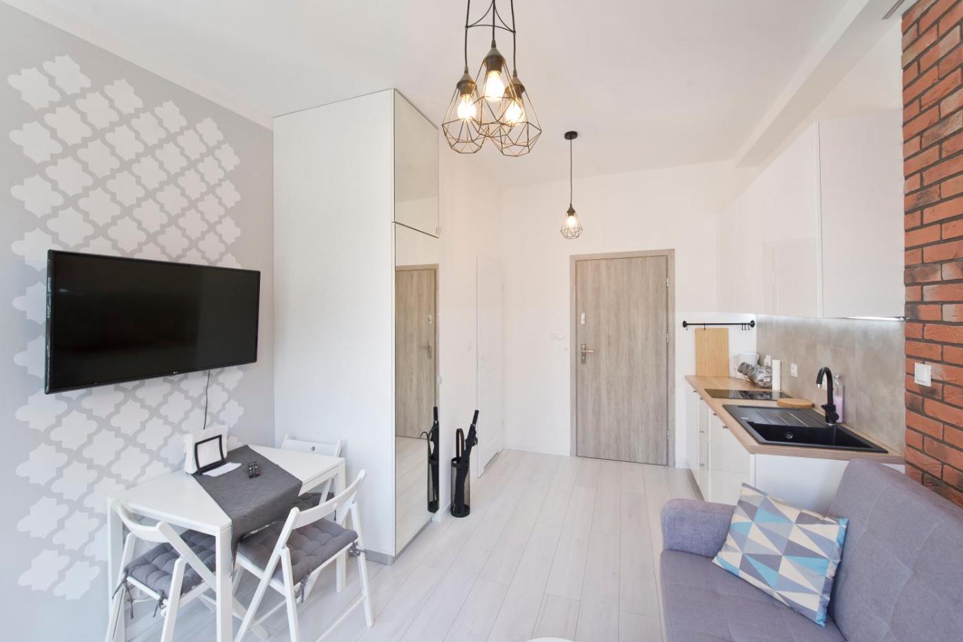 Apartament z 1 sypialnią. Featuring a private entrance, this apartment comprises 1 living room, 1 separate bedroom and 1 bathroom with a walk-in shower and a hairdryer. Meals can be prepared in the kitchen, which comes with a stovetop, a refrigerator, a dishwasher and kitchenware. The apartment provides a washing machine, a tea and coffee maker, a seating area, a flat-screen TV with cable channels, as well as city views. The unit offers 2 beds. Apartament - 4 osobowy. Powierzchnia pokoju ok.: 27 mkw. ;