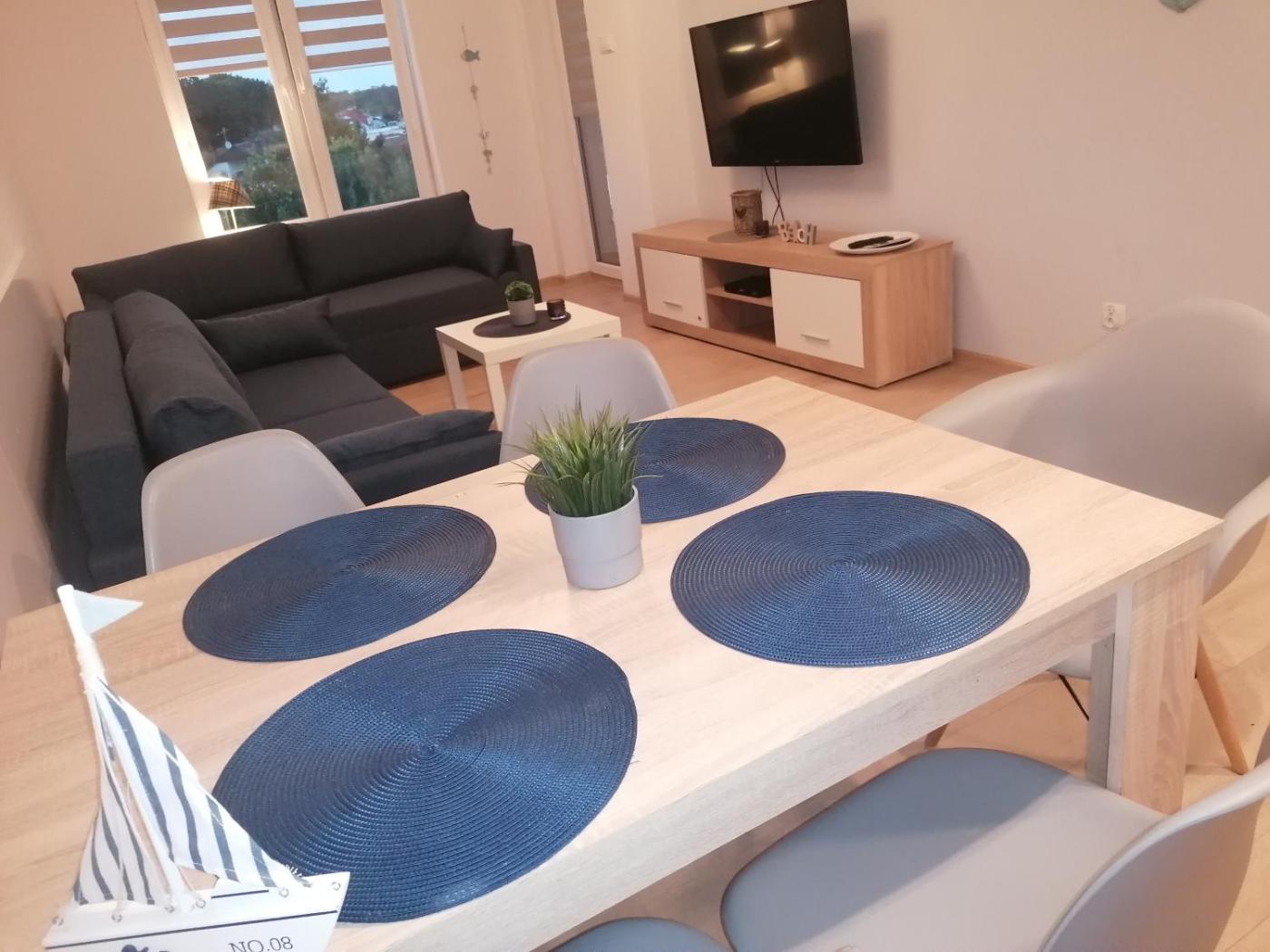 Apartament. This apartments standout features are the infinity pool and sauna. This apartment includes 1 living room, 1 separate bedroom and 1 bathroom with a shower and a hairdryer. The well-equipped kitchen has a stovetop, a refrigerator, a dishwasher and kitchenware. Boasting a terrace, this apartment also offers a washing machine, a tea and coffee maker and a flat-screen TV with satellite channels. The unit has 3 beds. Apartament - 6 osobowy. Powierzchnia pokoju ok.: 48 mkw.