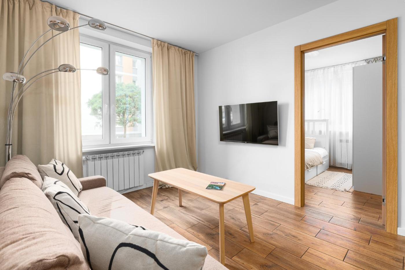 Apartament z 2 sypialniami. This apartment includes 1 living room, 2 separate bedrooms and 1 bathroom with a shower and free toiletries. In the well-fitted kitchen, guests will find a stovetop, a refrigerator, a dishwasher and a tea and coffee maker. The apartment offers a seating area, a dining area, a wardrobe, as well as a flat-screen TV with streaming services. The unit has 3 beds. Apartament - 6 osobowy. Powierzchnia pokoju ok.: 55 mkw.